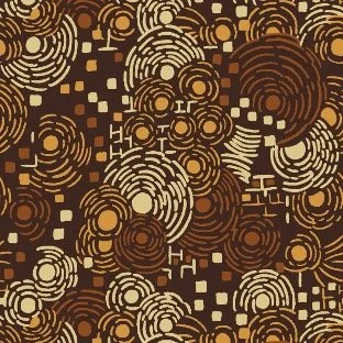 The Madiba Waves fabric features a flowing, circular pattern made up of layered waves that create a strong sense of movement and rhythm. Warm earth tones of rich browns, deep ambers, and soft golden hues anchor the design, giving it a grounded and organic feel. The repeating rings add depth without feeling rigid, allowing the pattern to feel dynamic and balanced at the same time, creating a visually engaging textile that feels both intentional and expressive